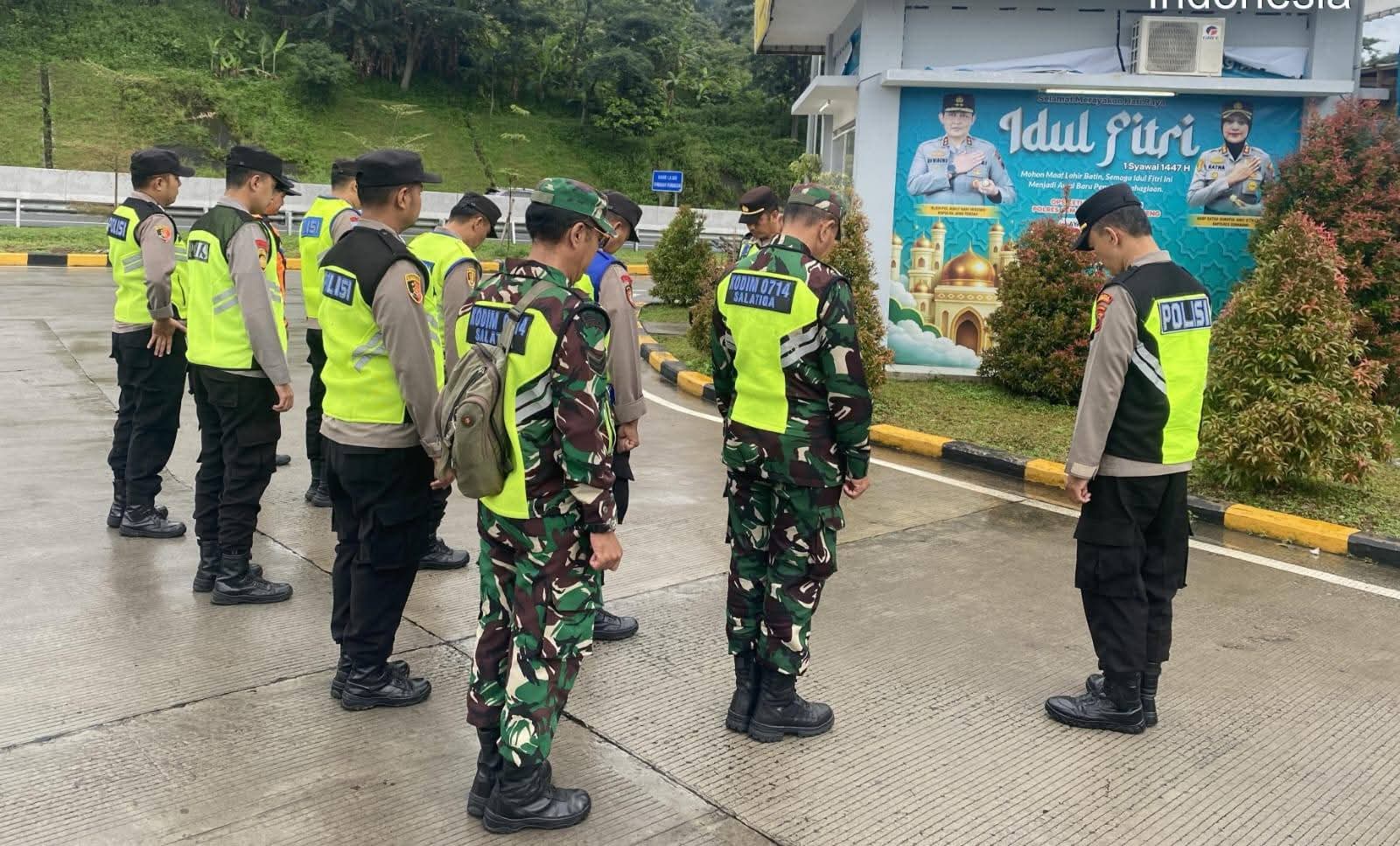 Kab.Semarang |Ontosenonews.com— Memasuki H+5 Hari Raya Idul Fitri, pengamanan arus mudik dan arus balik Lebaran di wilayah Kabupaten Semarang terus diperketat. Anggota Koramil 08/Suruh dan Koramil 13/Bawen bersama personel kepolisian dari Polres Semarang semakin intens melakukan penjagaan di sejumlah titik strategis, khususnya di Rest Area 465B dan Rest Area 439A yang berada di ruas Tol Salatiga–Lemah Ireng.Jumat(27/03)